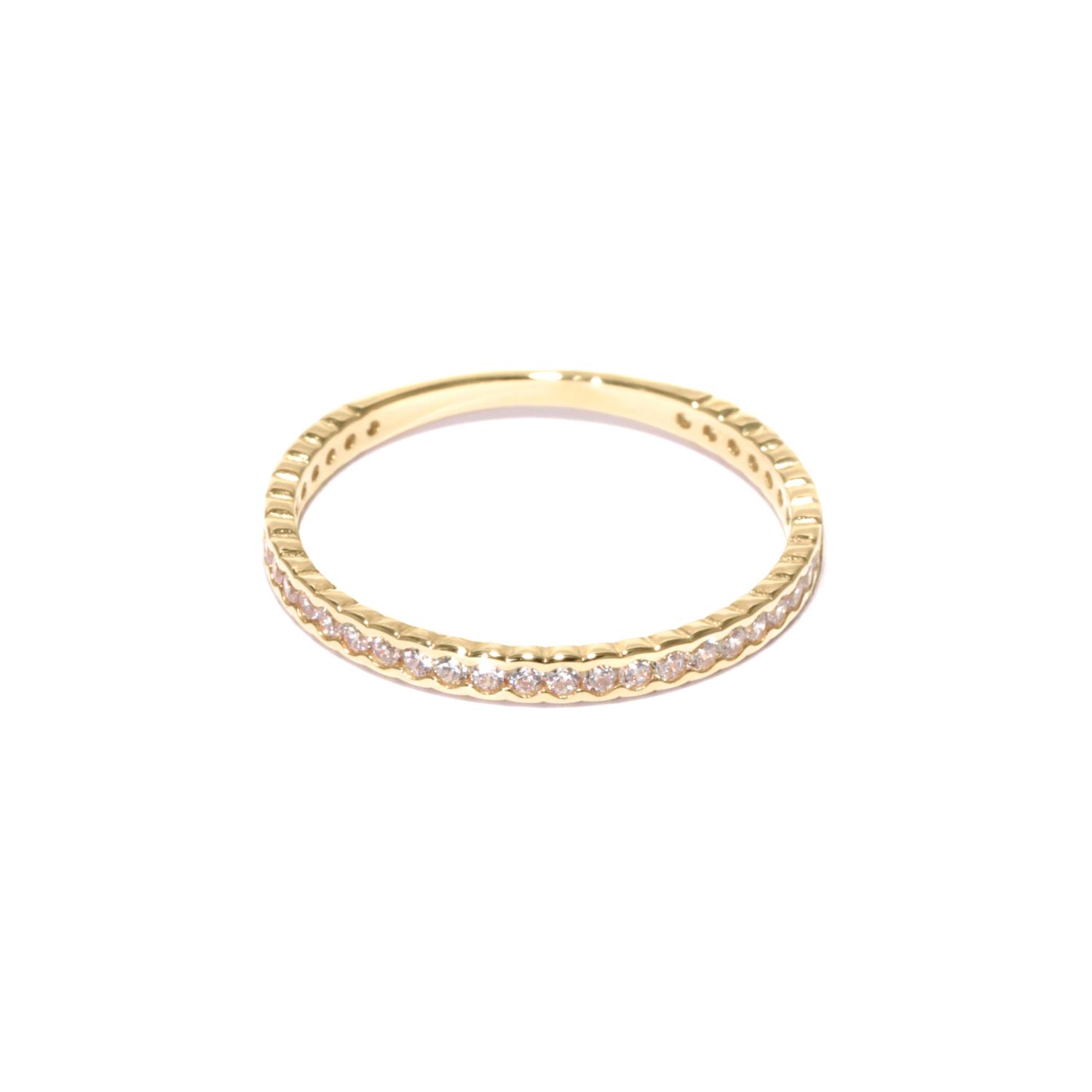 Gold ring with a row of cubic zirconia