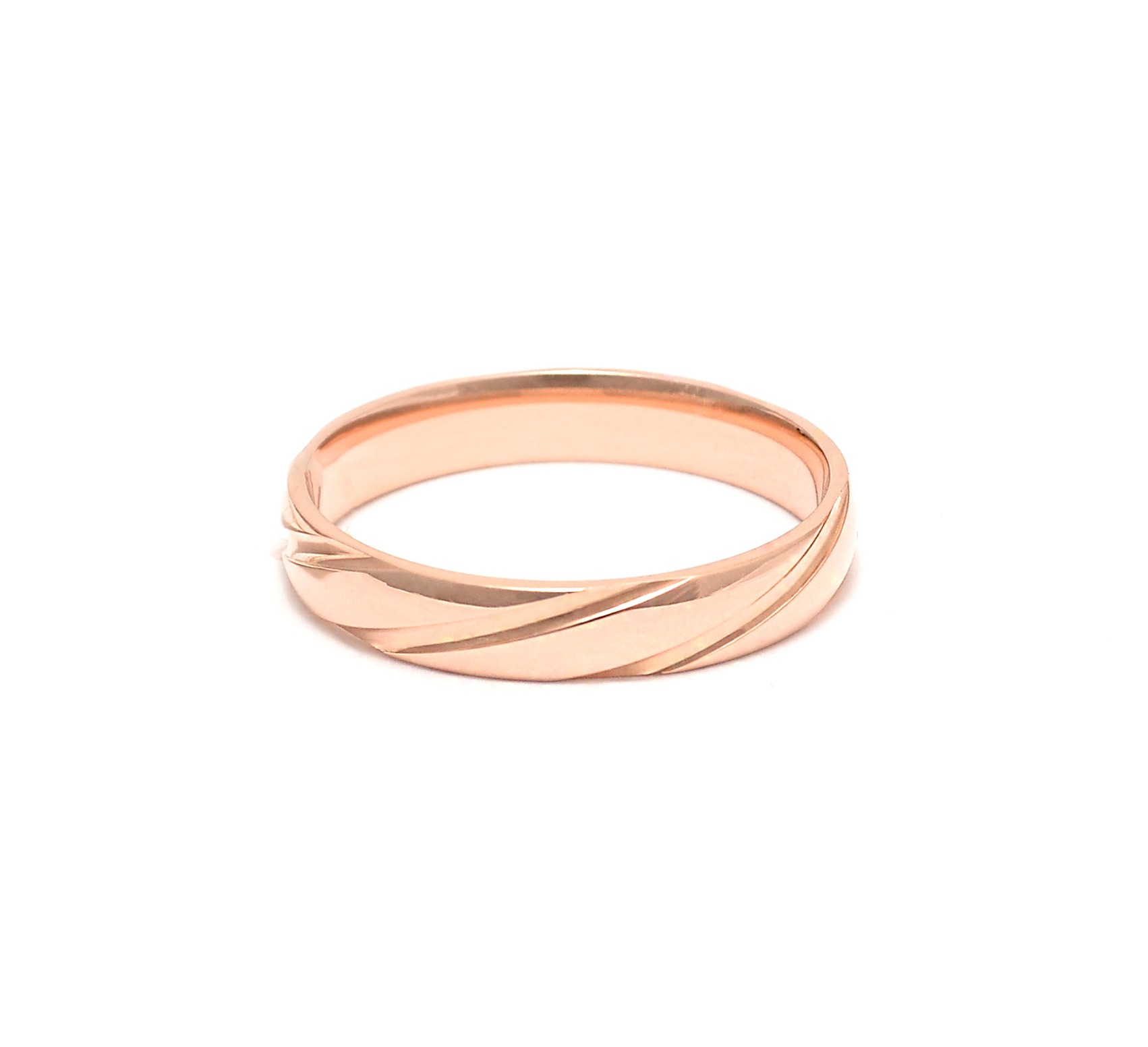 Red gold wedding ring with relief trim.