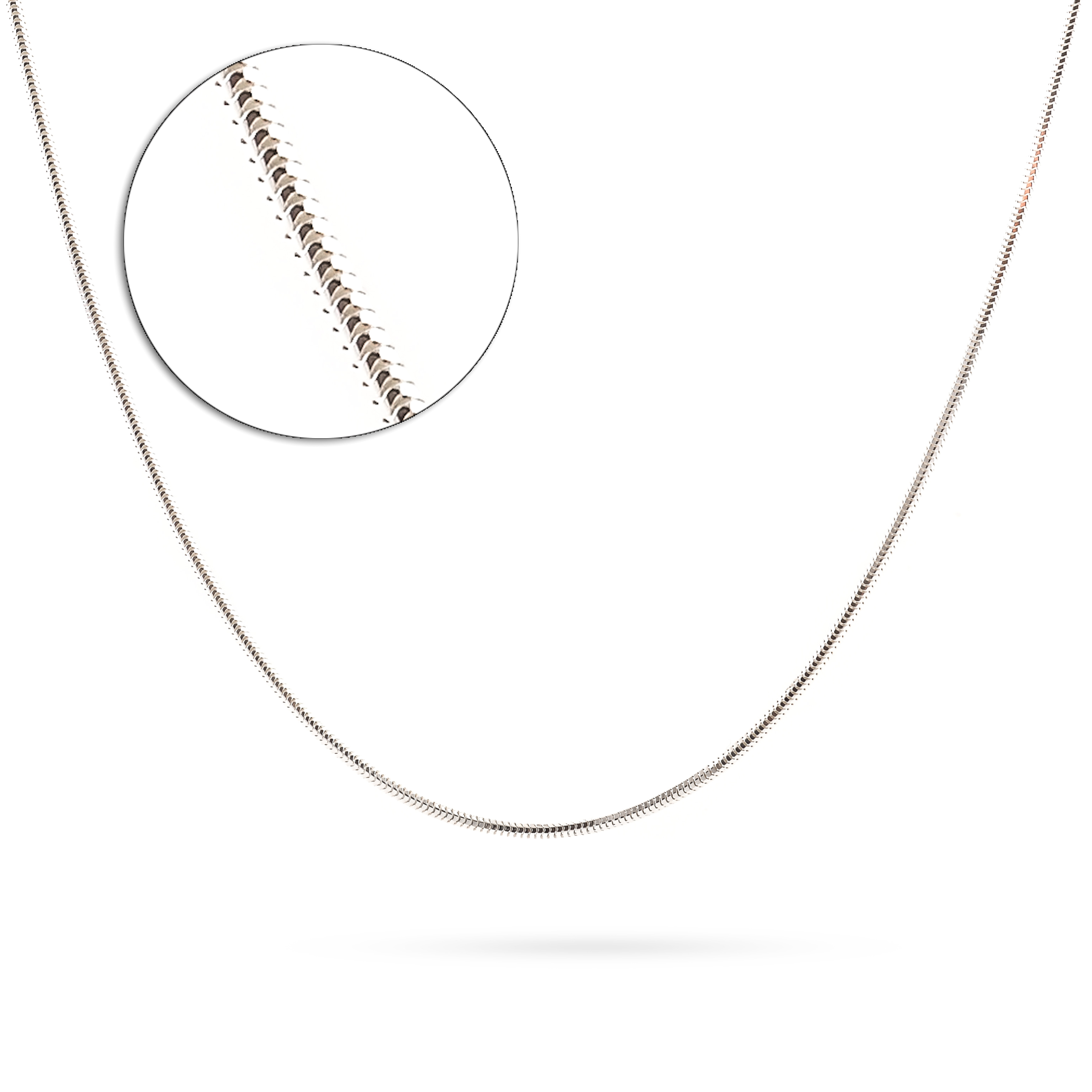 Silver chain with a “Real Snake” link design. The smooth and flexible structure creates a sleek and continuous line.