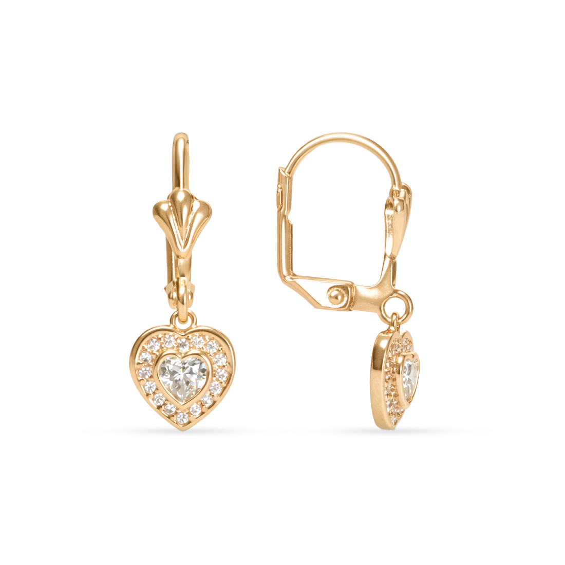 Gold plated earrings with heart shaped pendant