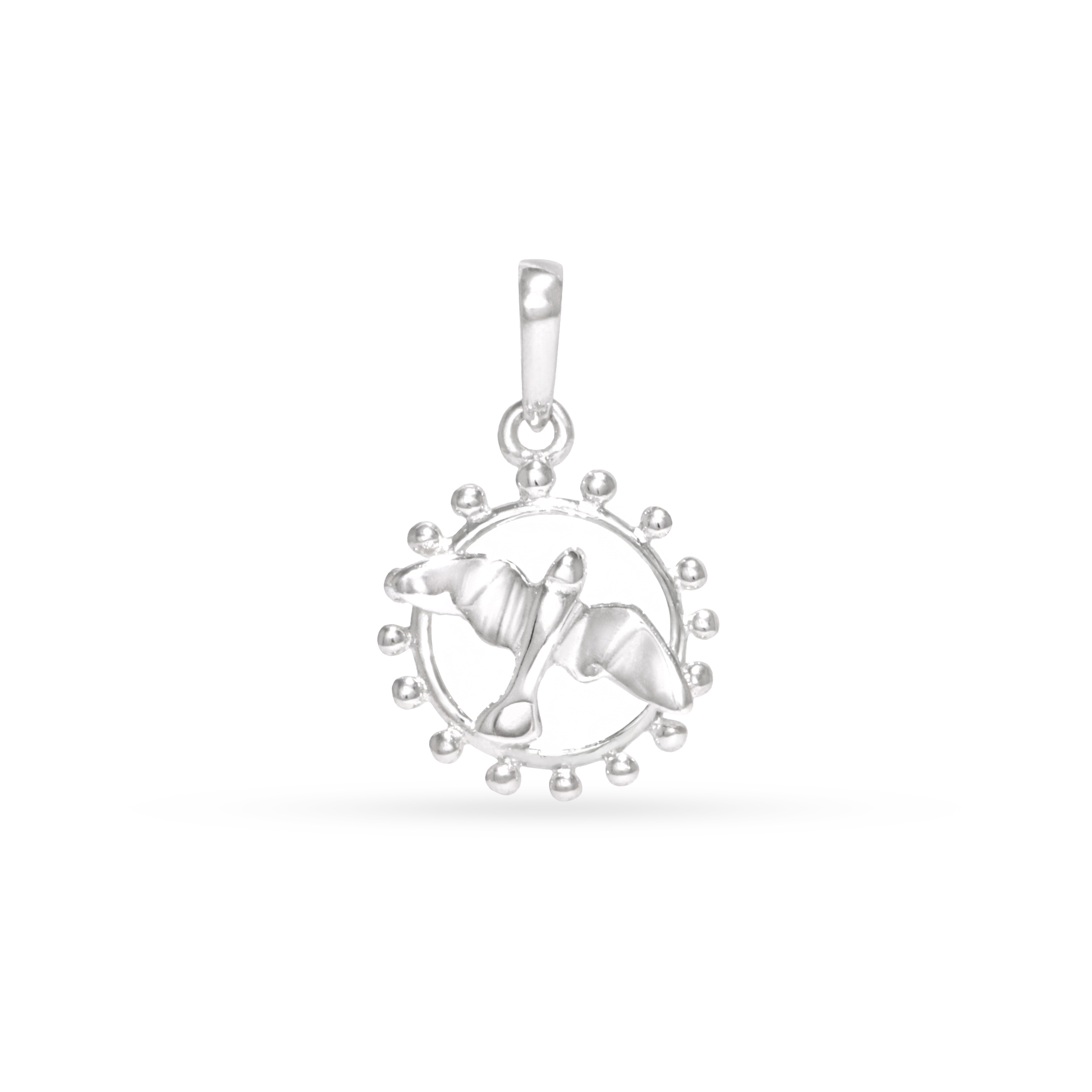 Silver pendant featuring a pair of wings within a circle — a symbol of freedom, lightness, and inner strength.