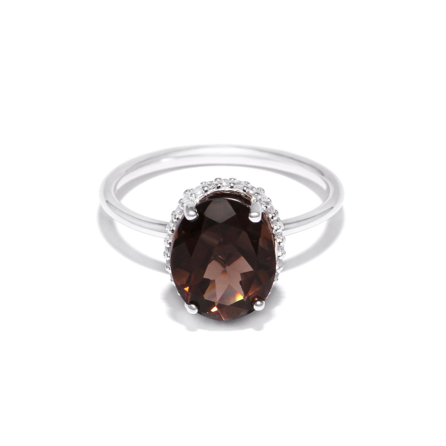 Silver ring with smoky quartz and cubic zirconia