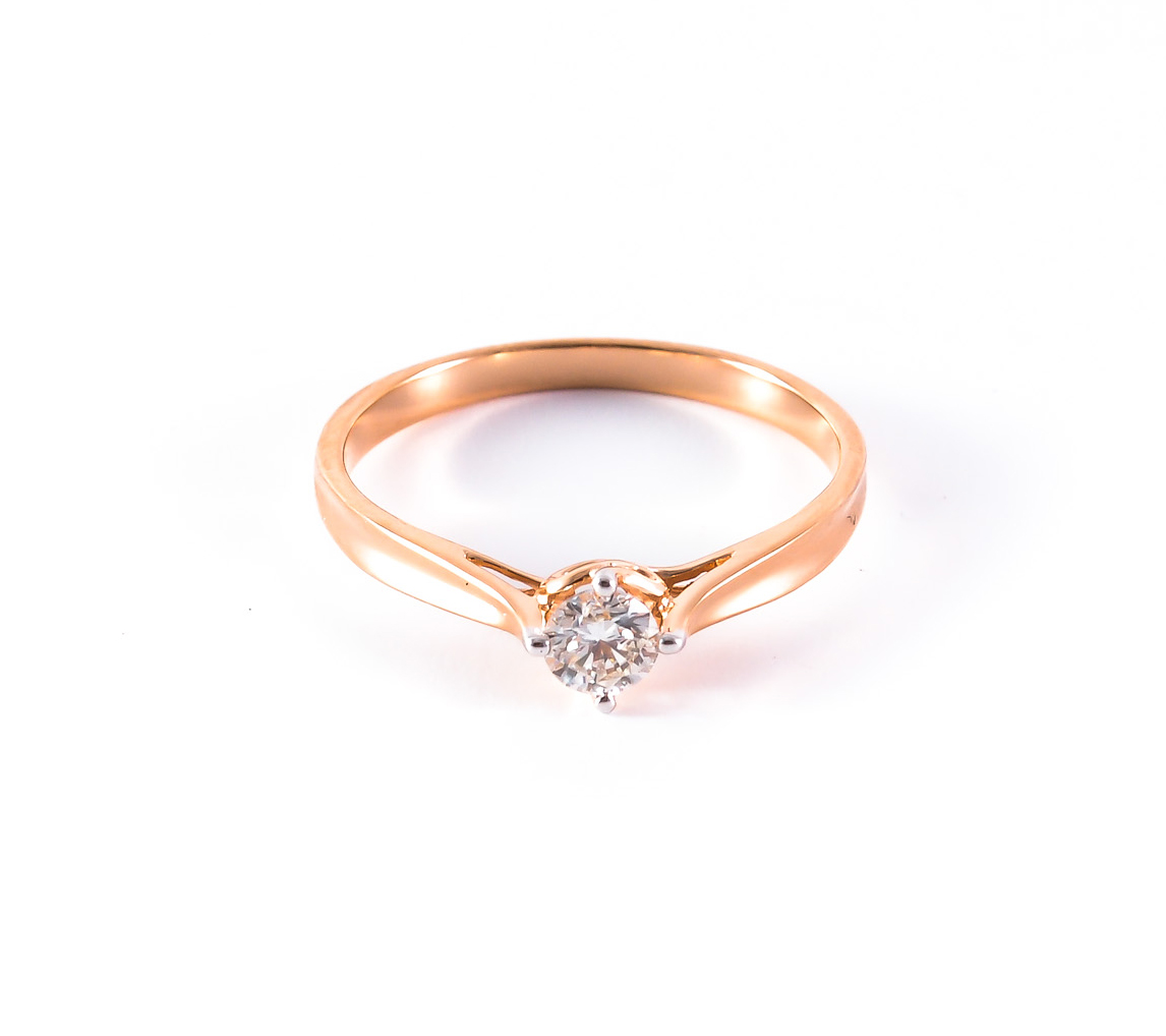 Elegantne sõrmus briljandiga punasest kullast nagakinnituses. Ideaalne sõrmus armastatule abieluettepaneku tegemiseks.