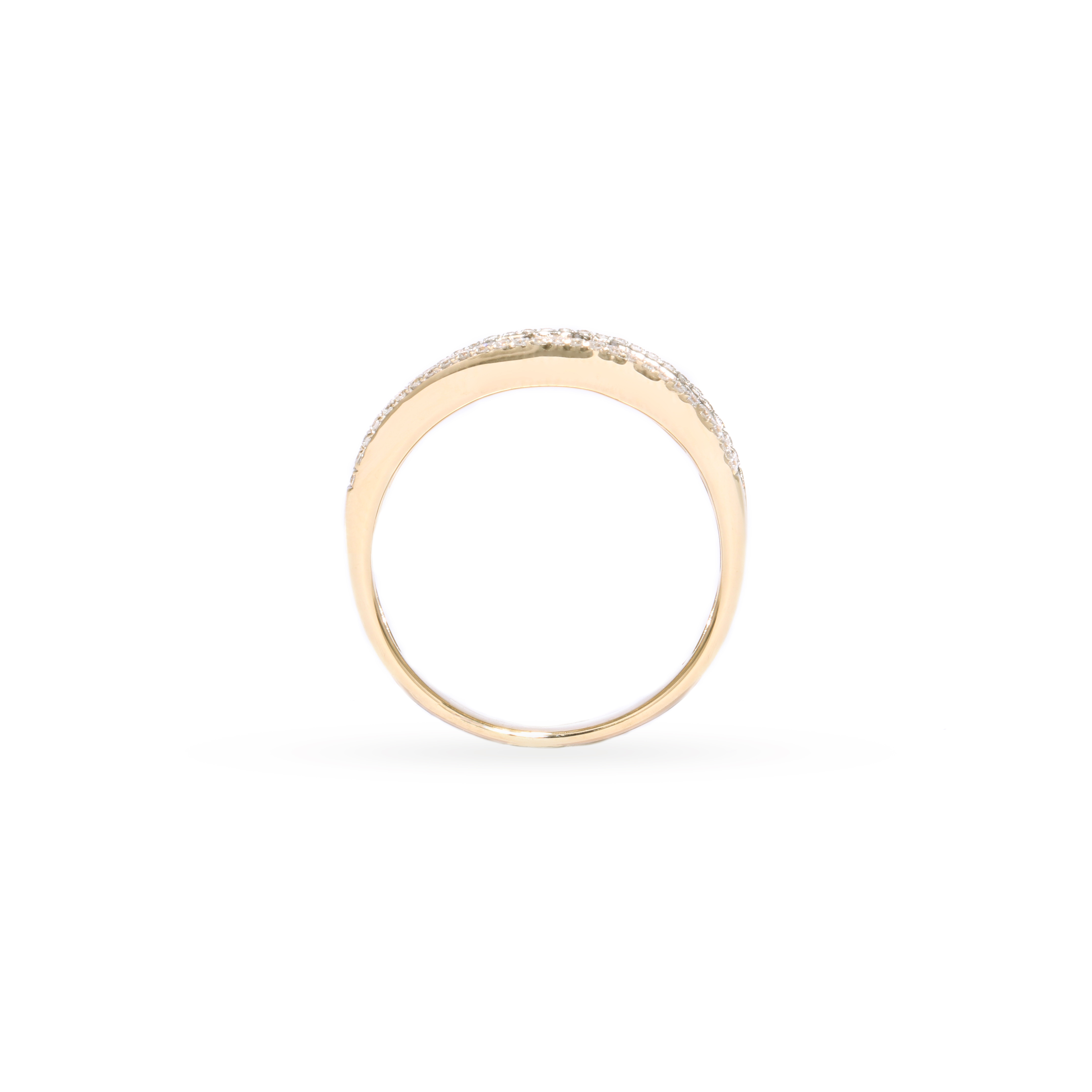 A yellow gold ring adorned with brown and white diamonds will be a great accent for your everyday or festive look.