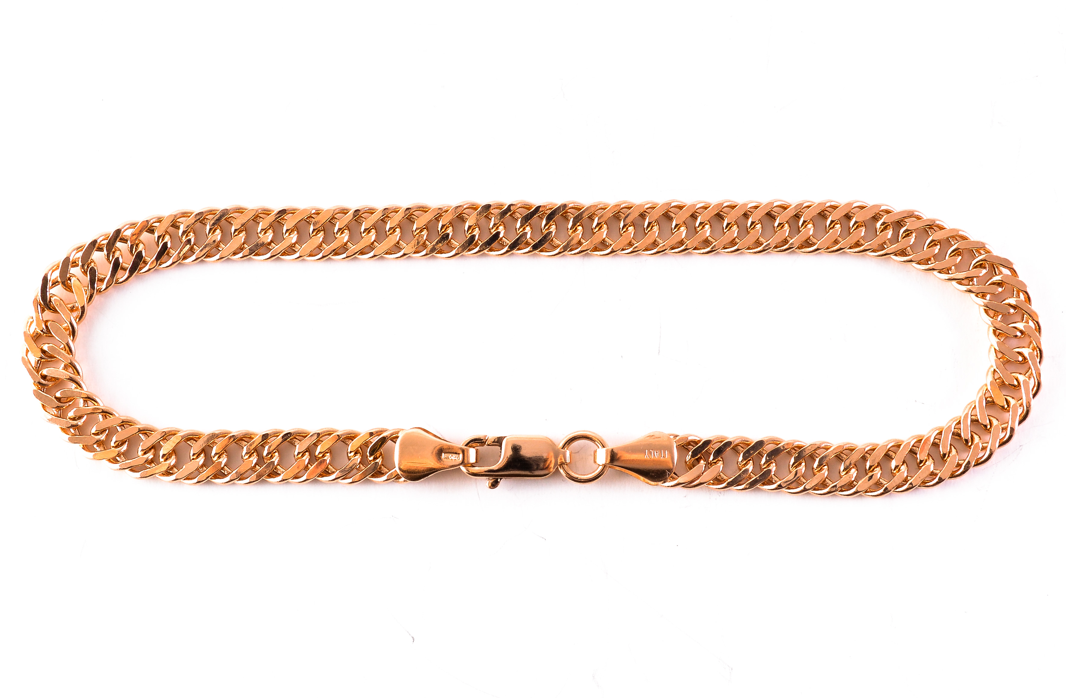 Rombo chain bracelet in red gold with diamond cut.