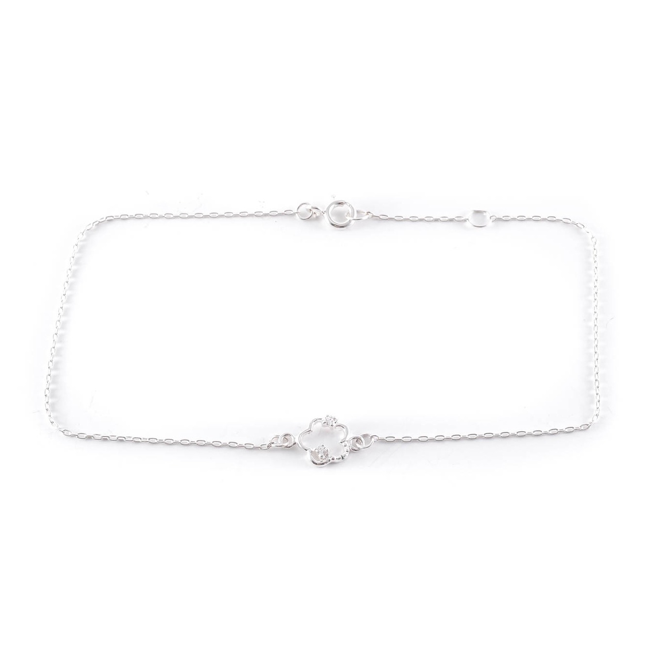Silver bracelet with flower and zircons.