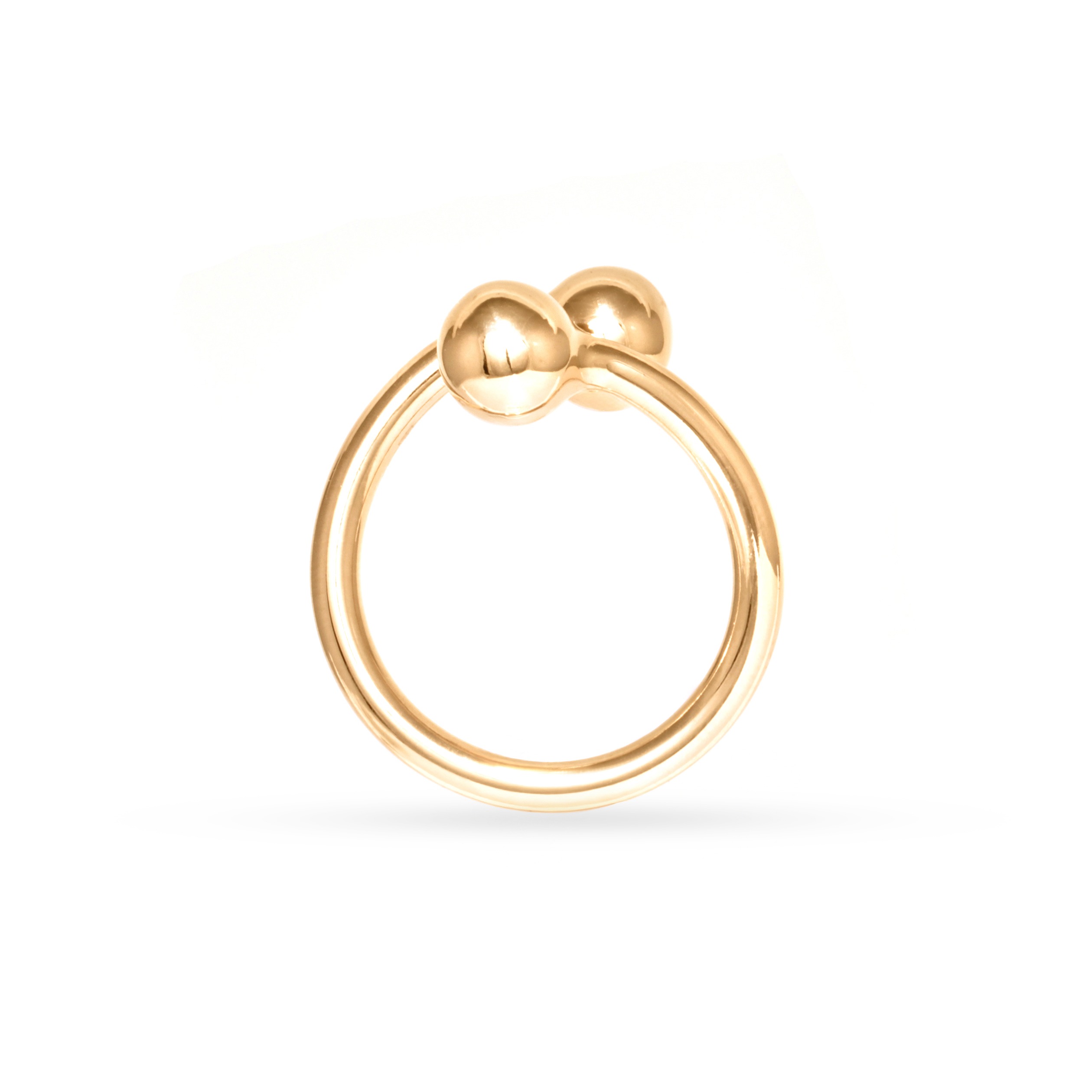 Gold plated ring with two ball elements
