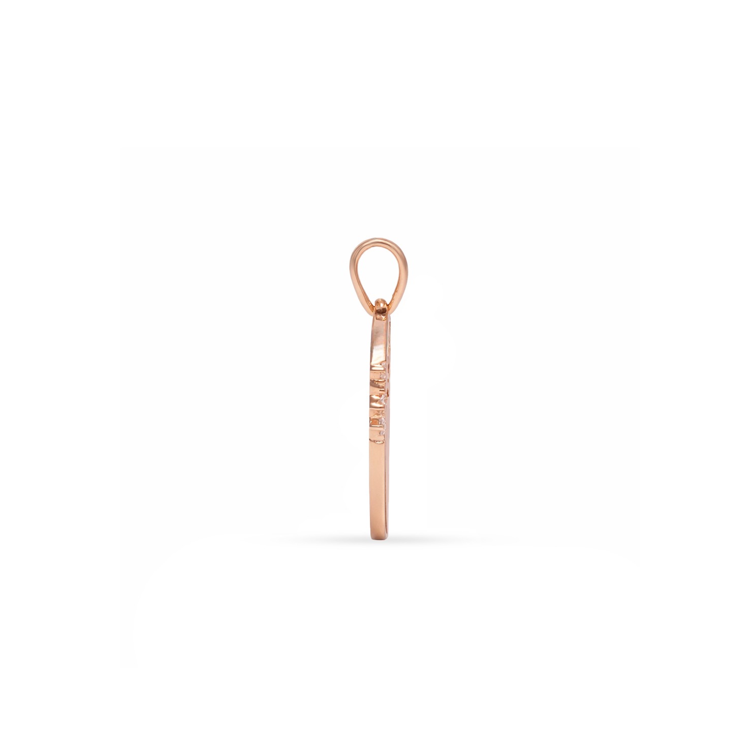 Золотой кулон в форме сердца с кубическими циркониями в верхней части. Нижняя часть гладкая и создаёт контраст.