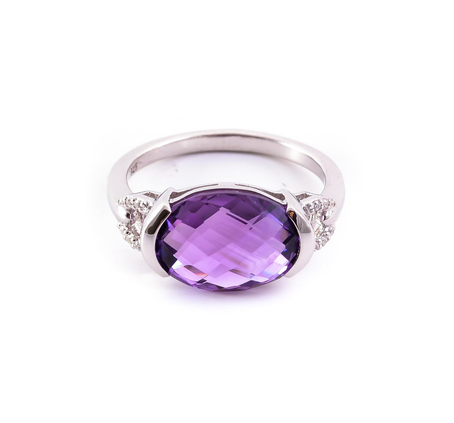 Sudraba gredzens ar ametistu un kubisko cirkoniju