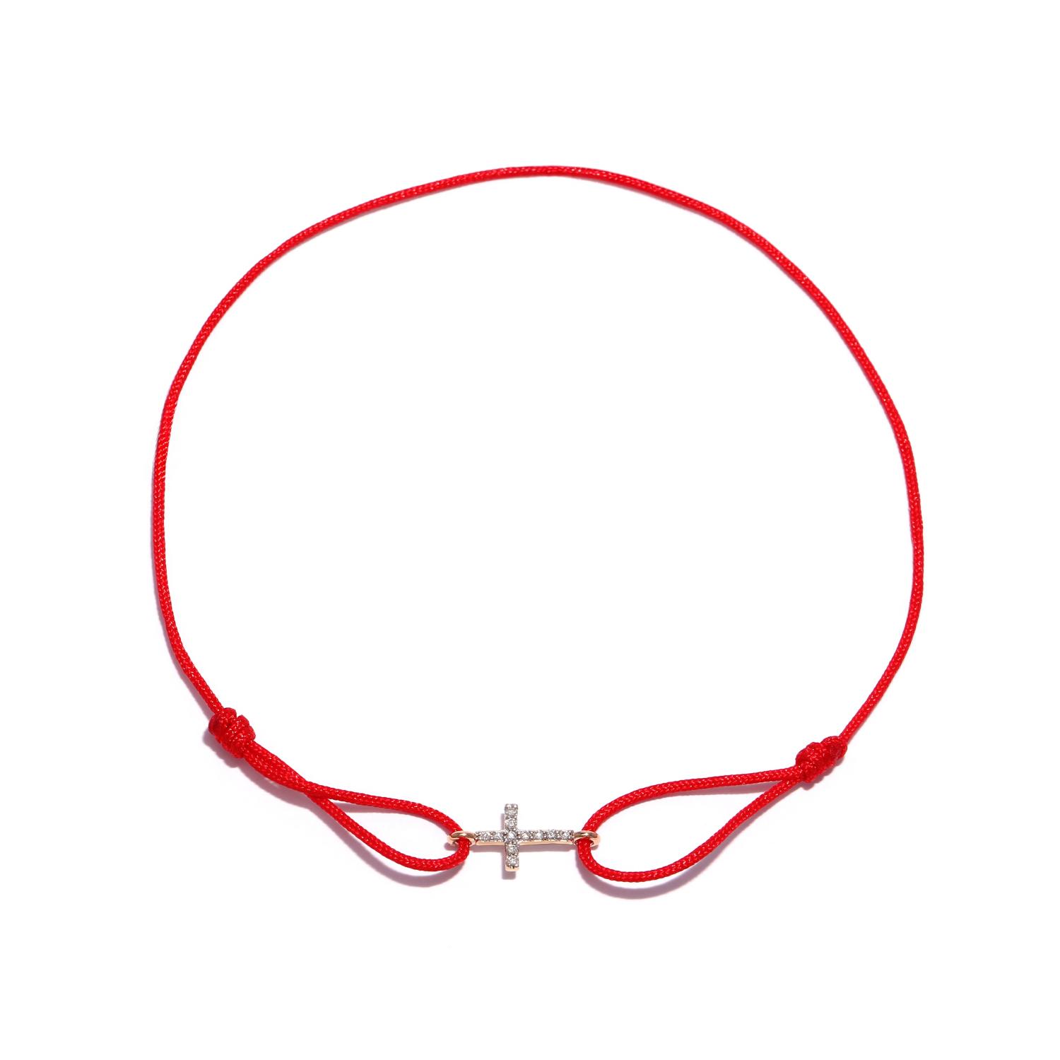 Red string bracelet with gold cross