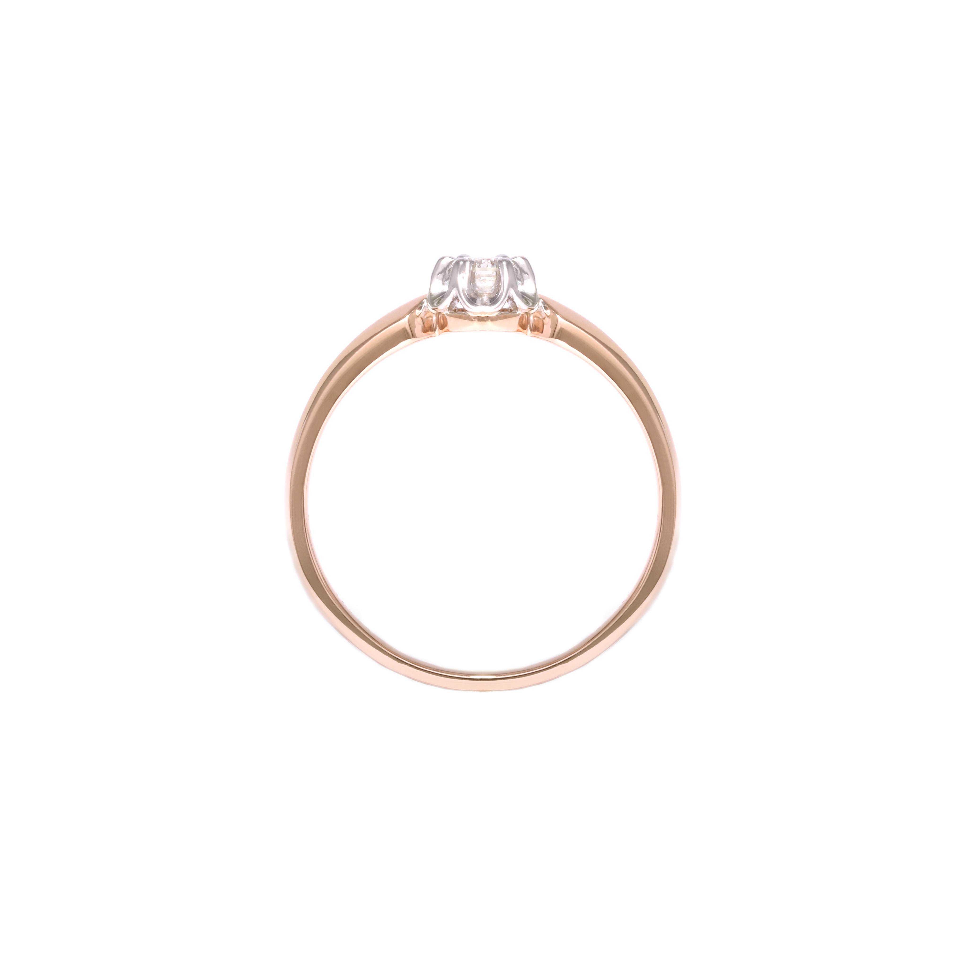 A red gold ring with a sparkling diamond. It will be perfect as an engagement ring.