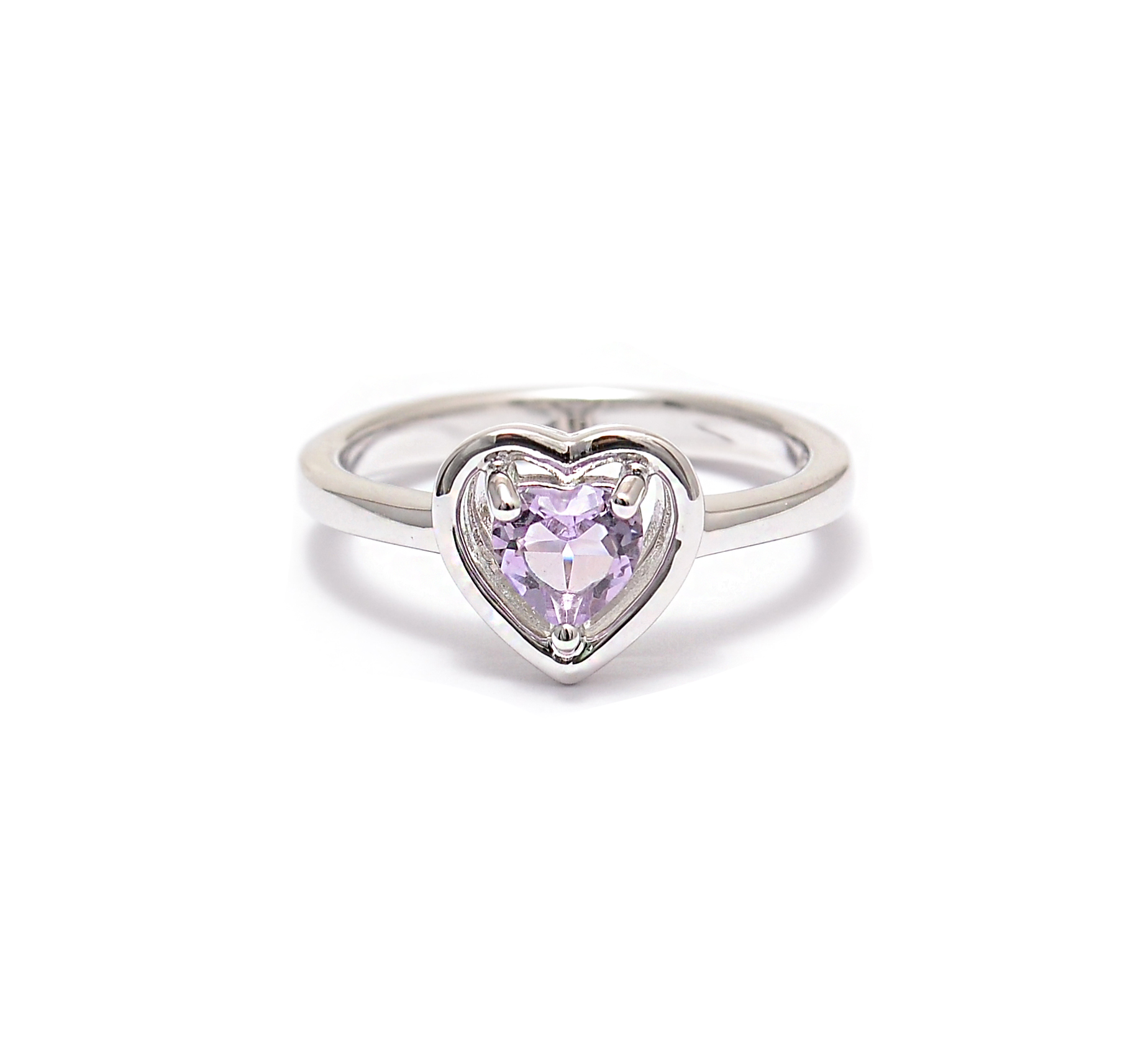 Silver heart shaped ring with amethyst
